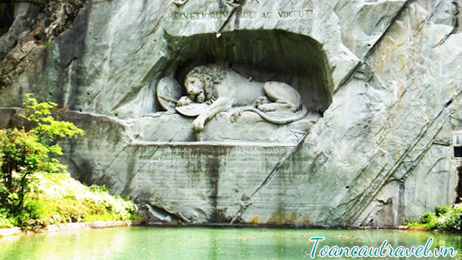 Để tưởng nhớ sự hy sinh lớn lao của các binh lính Thụy Sĩ trong cuộc cách mạng Pháp, viên sĩ quan Karl von Altishofen Pfyffer đã cho khắc tác phẩm này được thiết kế bởi nhà điêu khắc Đan Mạch - Bertel Thorvaldeson, và được khắc bởi nghệ nhân người Đức - Lucas Ahorn vào năm 1820. Bức tượng dài 10m, cao 6m khắc họa hình ảnh con sư tử nằm chết, đầu cúi xuống, một mũi tên đâm vào vai và chân của nó đang bảo vệ một bông hoa ly - biểu tượng của chế độ quân chủ Pháp. Bên dưới là danh sách các liệt sĩ và những người sống sót.